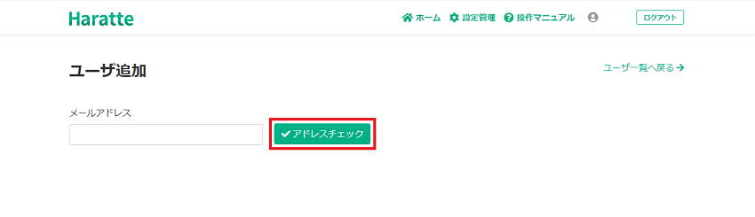 追加するユーザーのメールアドレスを入力し、「アドレスチェック」ボタンをクリックします。